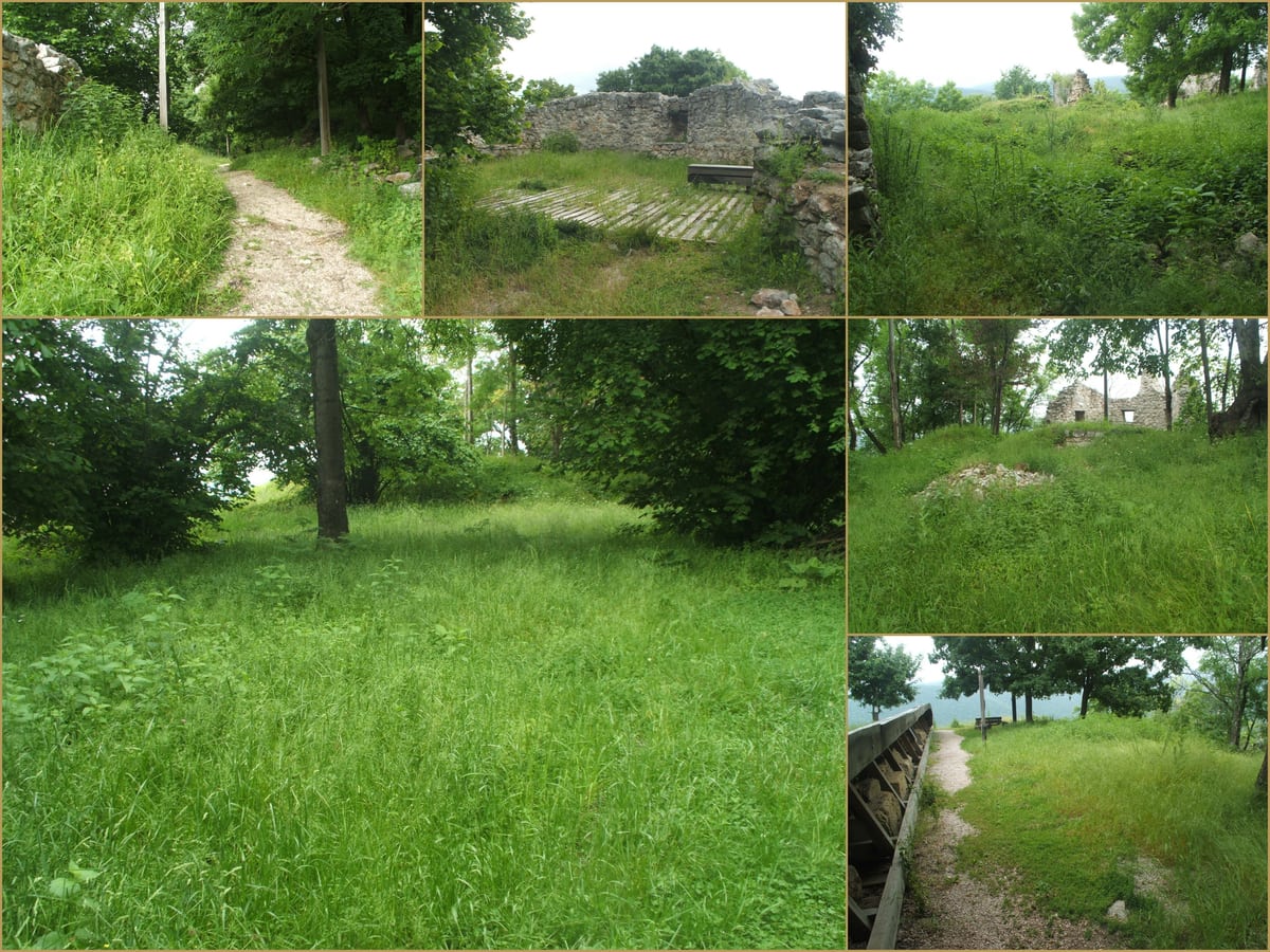 Négy fűkasza berregett fel legfőbb célunk érdekében, hogy a patinás várrom udvarára érkező rövidnadrágos kirándulóknak ne kelljen a csaláncsípés áldozatává válniuk. Tehát elsősorban a Nemzeti Várprogram alkalmával kialakított látogatói ösvény mentén dolgoztunk, a bivalyerős fűkaszáink hatalmas rendeket vágtak a csalánban. Mert bizony ez a gyomnövény a tavaszi esőzés és napsütés hatására iszonyatos gyorsasággal megjelenik szeretett Szádvárunk udvarain, falainak belső és külső oldalán.