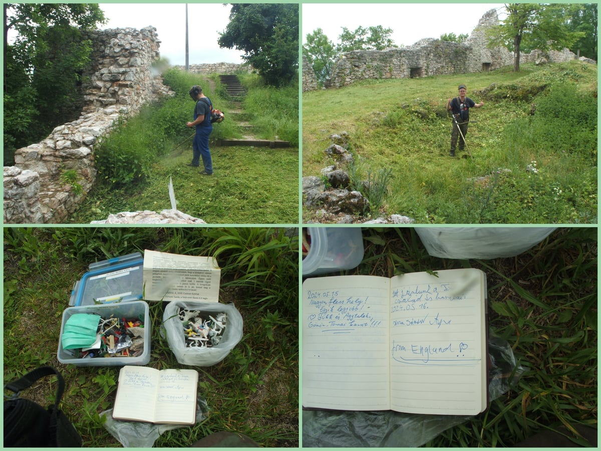 De bennünk emberére talált a jászok között „csanának” mondott szúrós növény, órákon keresztül irtottuk. Csak akkor álltunk meg, amikor kifogyott a benzin vagy a damil a gépeinkből. Nekem még, mint a szádvári geoláda egyik gazdájának, szorgalmi feladatul jutott felkeresni a rejtekhelyet, hogy annak tartalmát feltöltsem újabb középkori játék katonákkal és lovakkal. Félórával később egy család érkezett ládavadászatra. A sikeres megtalálásuk után örömmel néztem a gyermekek mosolygós arcát, amikor átvizsgálták a műanyag dobozka tartalmát. Remélhetőleg ők is tovább adják Szádvár jó hírét-nevét! Mert ilyen fiatalon kell megszerettetni az ifjúsággal a természetjárás szépségeit, ráirányítani az érdeklődésüket a hegyek és dombok, erdők és mezők világára, és természetesen az elődeink által létrehozott épületekre.
