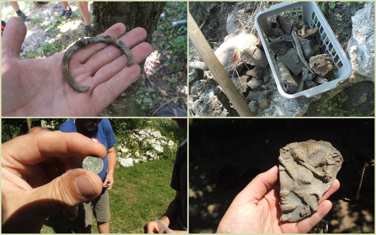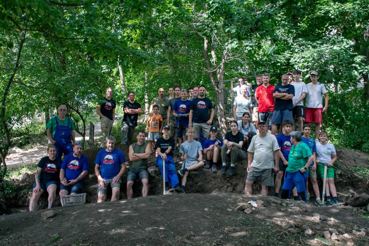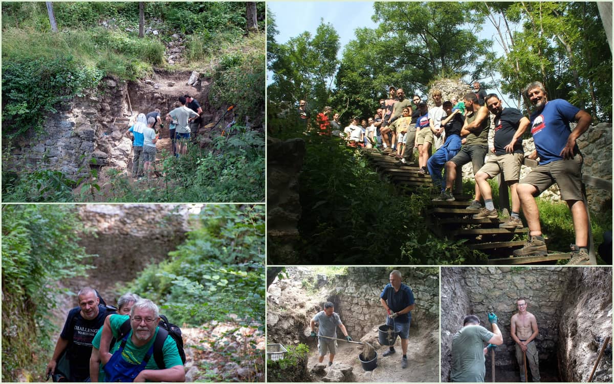 A történelmi helyszínen Gál Viktor régész, a miskolci Herman Ottó Múzeum szakembere és két munkatársa várt minket, hogy munka és balesetvédelmi oktatás után a négy régészeti szelvényben megkezdhessük a munkát. A középsővár udvarán, annak déli és északi fala mentén, valamint a nyugati várudvaron a déli fal, illetve a hatalmas Sybilla-pince lejáratánál kezdtük el kutatni a régmúlt időkben élt várbeliek nyomait. Szerencsésnek bizonyult a hangyaszorgalmú munkánk, hiszen sorra kerültek napfényre az egykoron elvesztett csizmapatkók, ezüstpénzek és sokféle más tárgyak. A kályhacsempék közül nekem legjobban tetszett az a darabka, amelyen egy paripa feje és a kantárt fogó lovag keze a hosszú lándzsával volt látható.